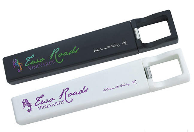 These amazing little custom wine openers come in black or white and again, the imprint can be your full color logo or message! Quantities start at only 100.